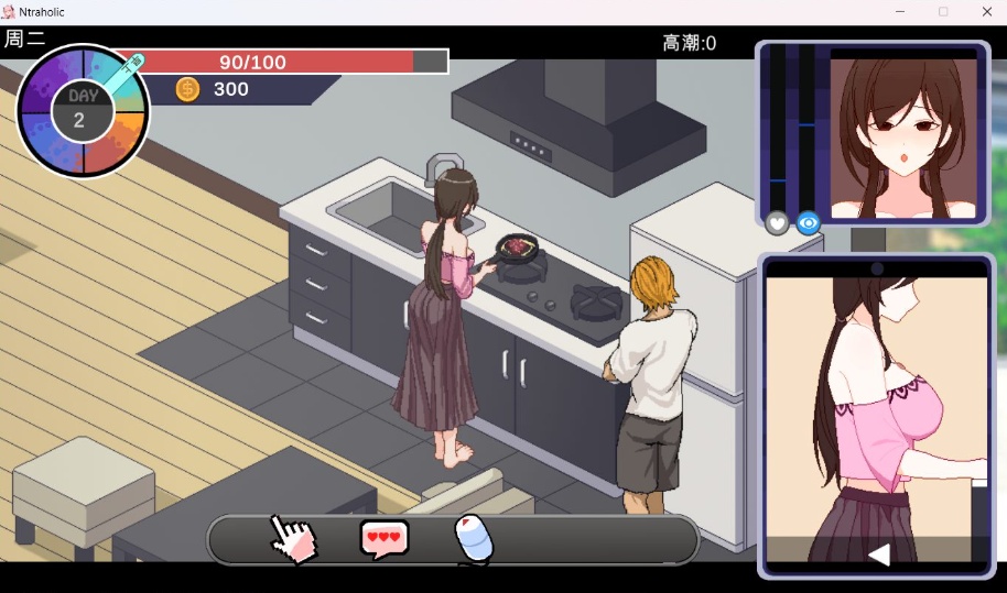 有趣的游戏系统:短信,相册,魅魔技能,商店道具,对隔壁夫妇的攻略,NPC,怀运系统,有趣的工作小游戏以及阅读(抽奖)等。