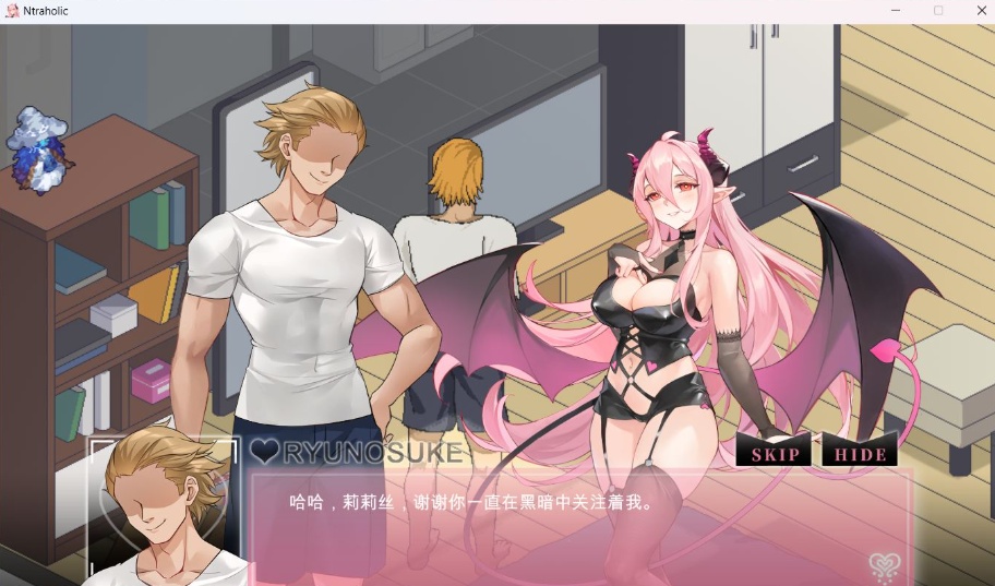 最大不同是男主还有一个魅魔可以召唤出来使用特殊技能帮忙攻略女主。
